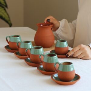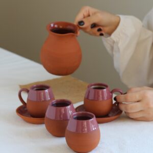 Doğal kırmızı topraktan üretilmiştir. Ürünlerimiz ilk (hamlama) pişirim ve sırlı pişirim olacak şekilde iki kez yüksek derecede (850 – 1050)fırınlanarak