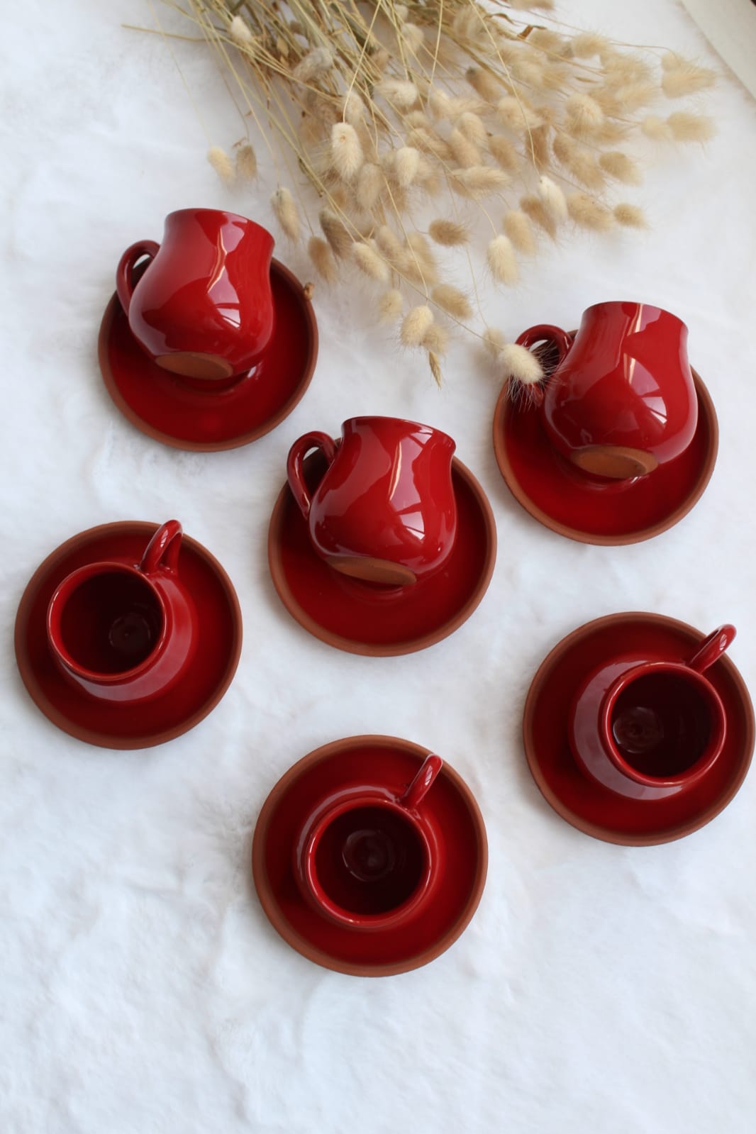 Lal Dört Kişilik Toprak Fincan ve Cezve Takımı